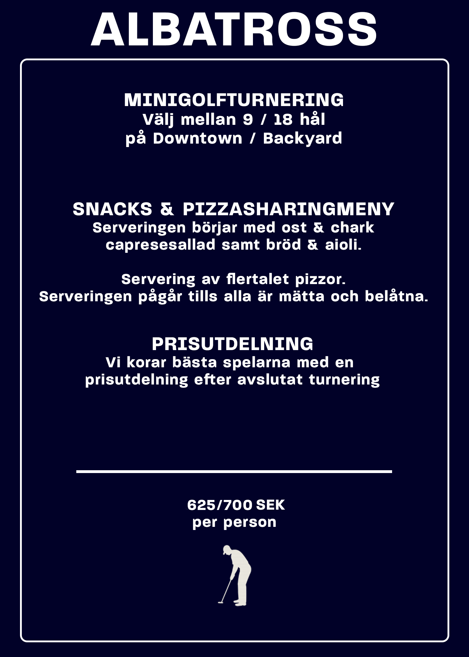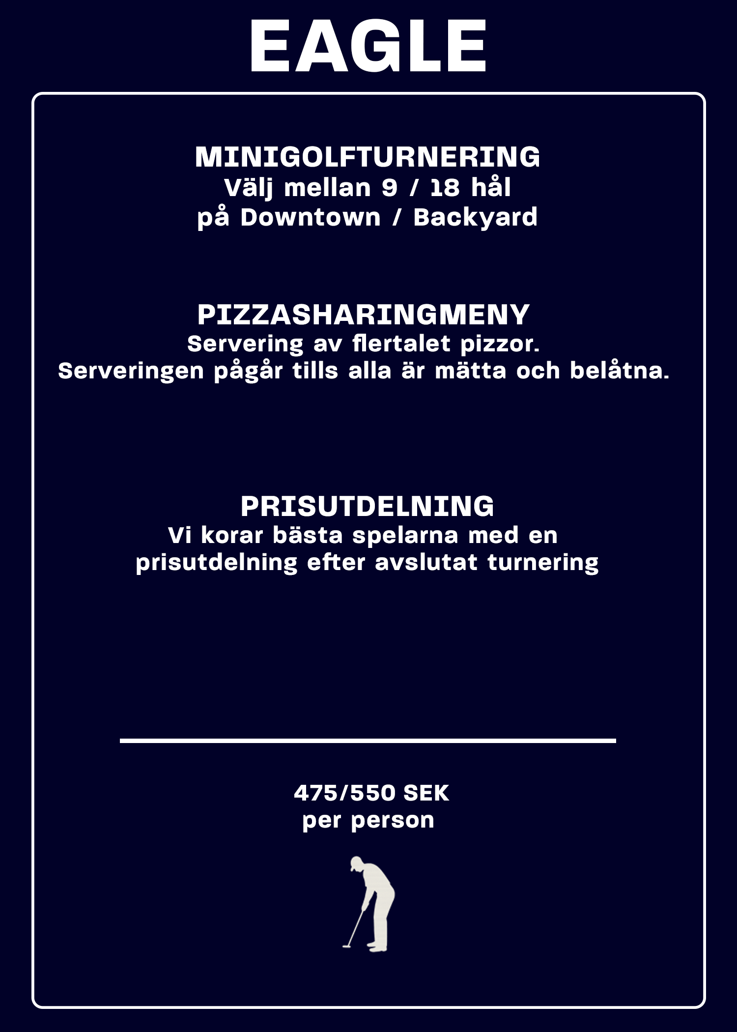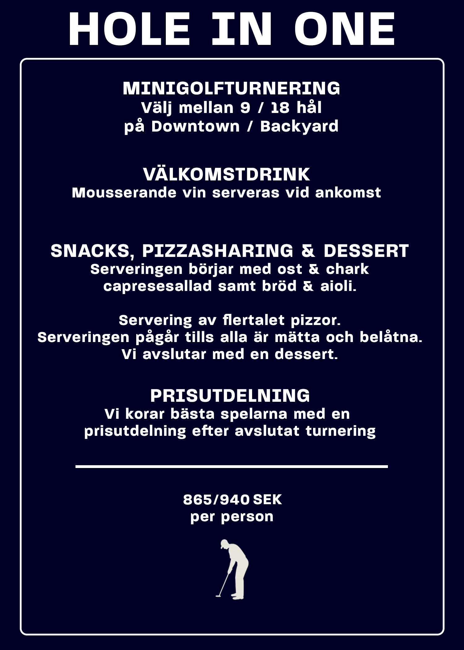 I samtliga paket kombinerar vi minigolf tillsammans med våra fantastiska pizzor.